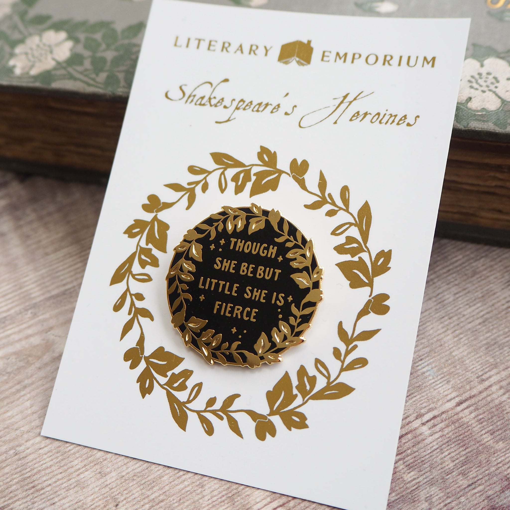 Part of our Shakespeare's Heroines collection, this enamel pin takes inspiration from Shakespeare's A Midsummer Night's Dream in which Helena describes Hermia - 'And though she be but little, she is fierce.'