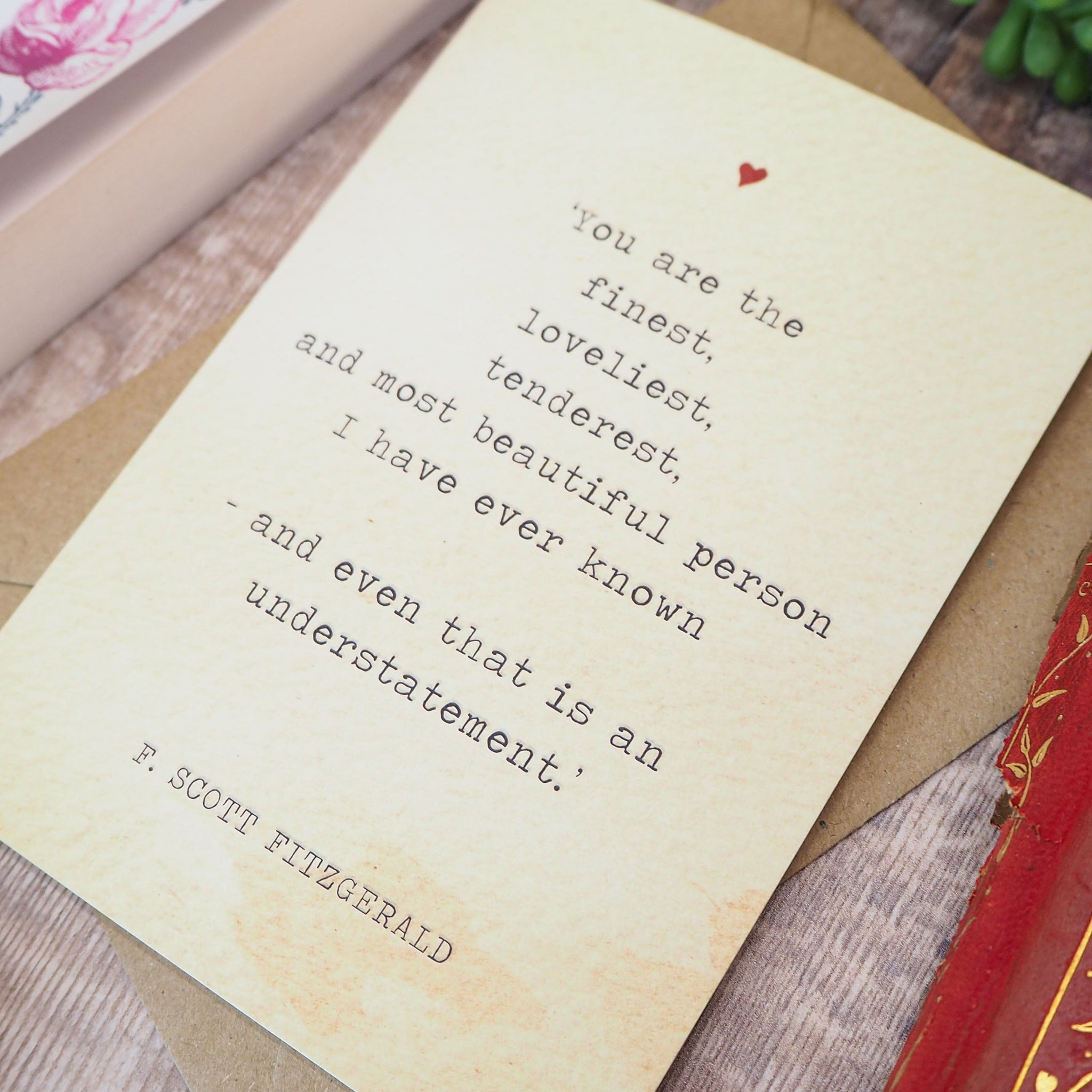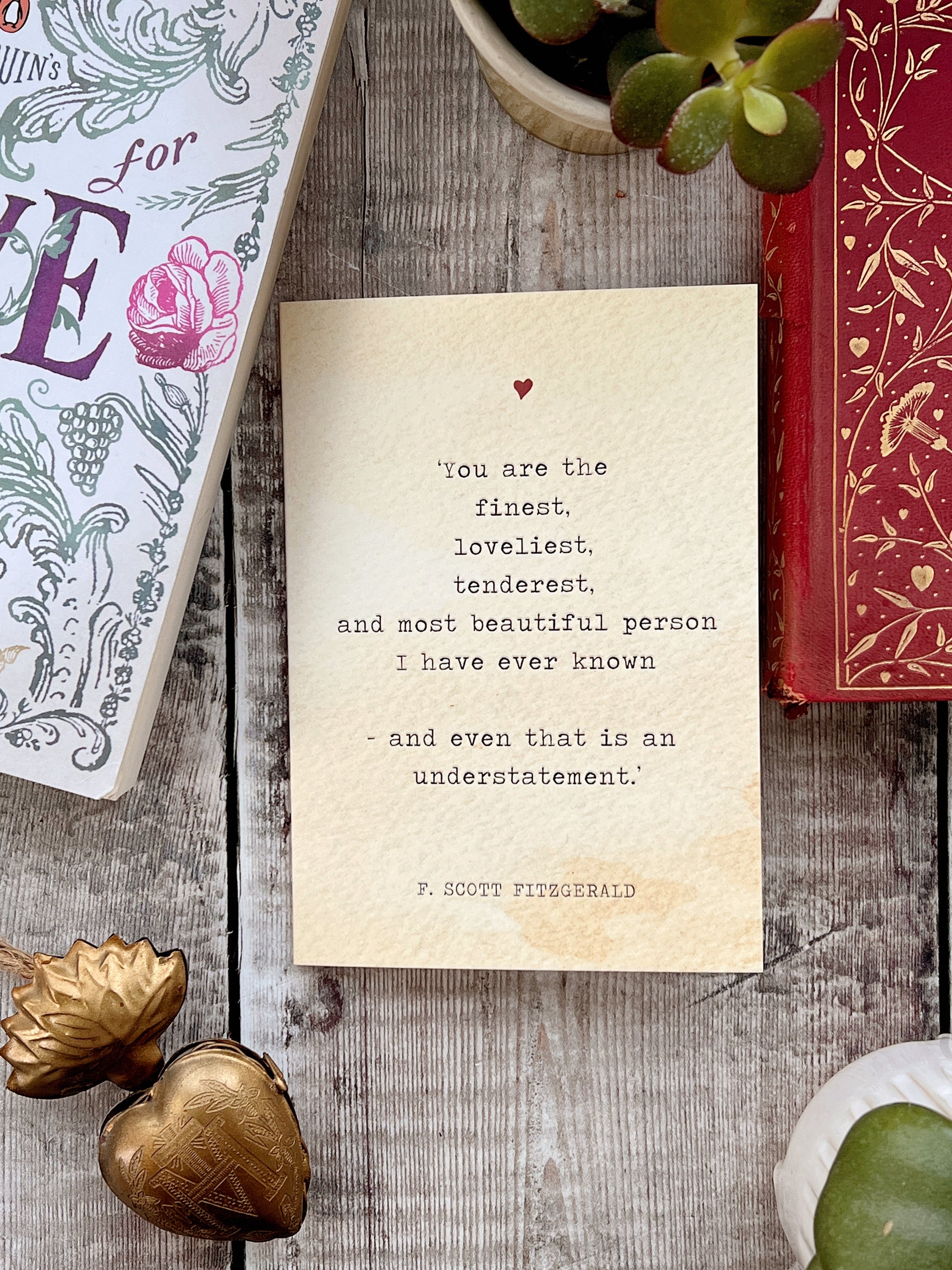 Celebrate enduring love with this literary Valentine’s card for book lovers, featuring a deeply romantic quote from F. Scott Fitzgerald.